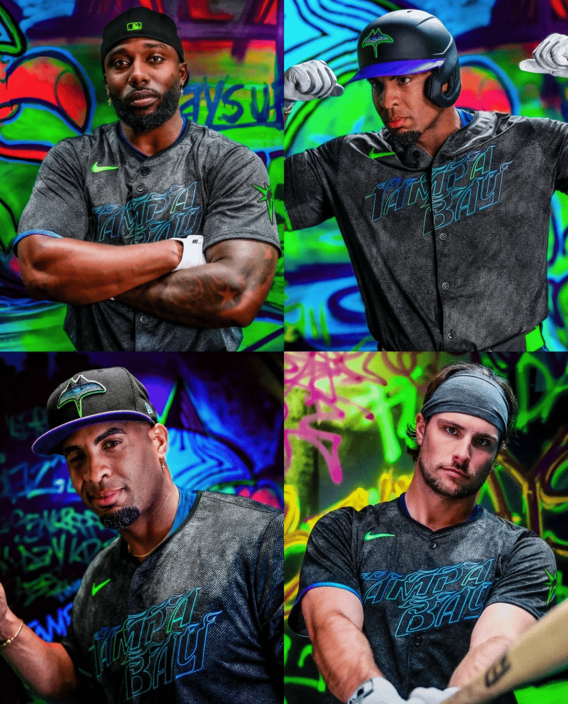 The "grit" comes from the willingness to do things differently as an organization, while the "glow" is focused on the vibrance of Tampa Bay, according to Warren Hypes, vice president of creative and brand with the Rays. The design celebrates the city's "counterculture scenes," which include skate, street art, streetwear, tattoo and music . . .